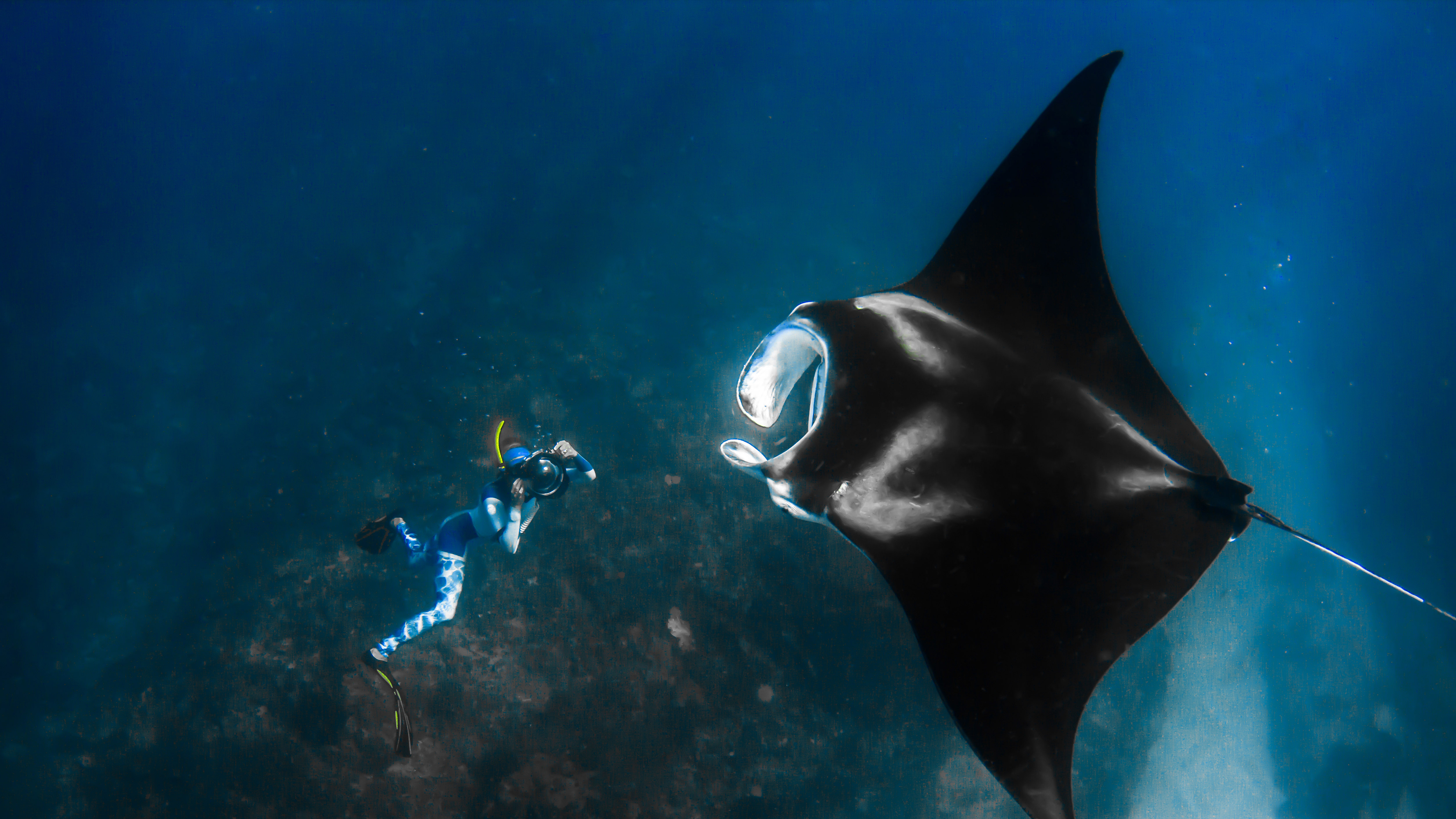 Giant manta ray and a photographer off the Ningaloo Coast, Australia (© Shutterstock Premier)