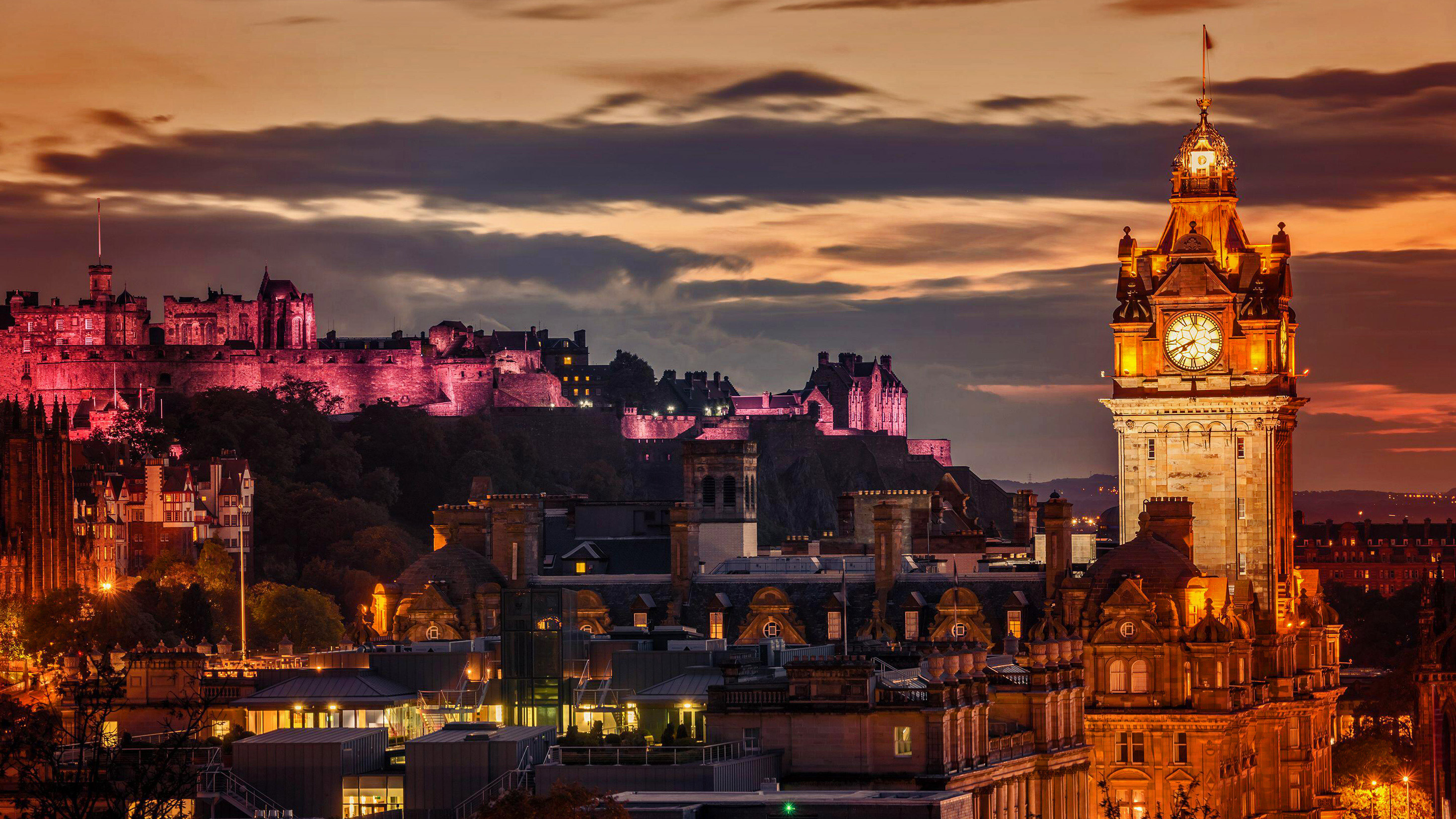 夜晚的爱丁堡城市天际线,苏格兰 (© Suranga Weeratuna/Alamy)