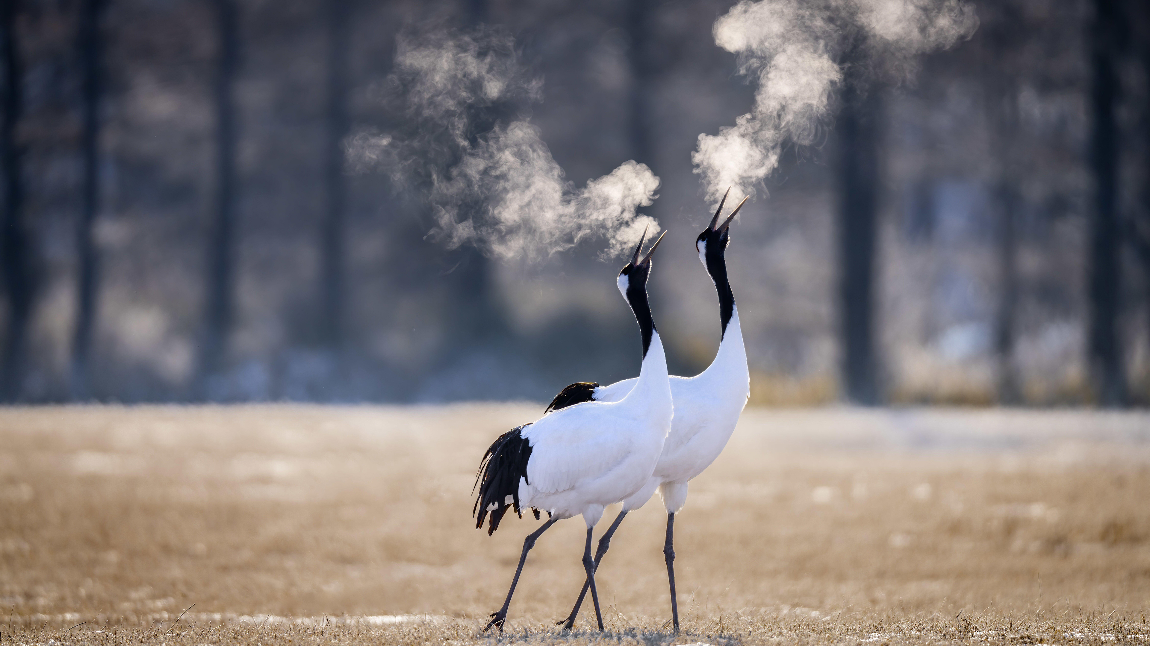 钏路的两只丹顶鹤,北海道,日本 (© Wirestock, Inc./Alamy Stock Photo)