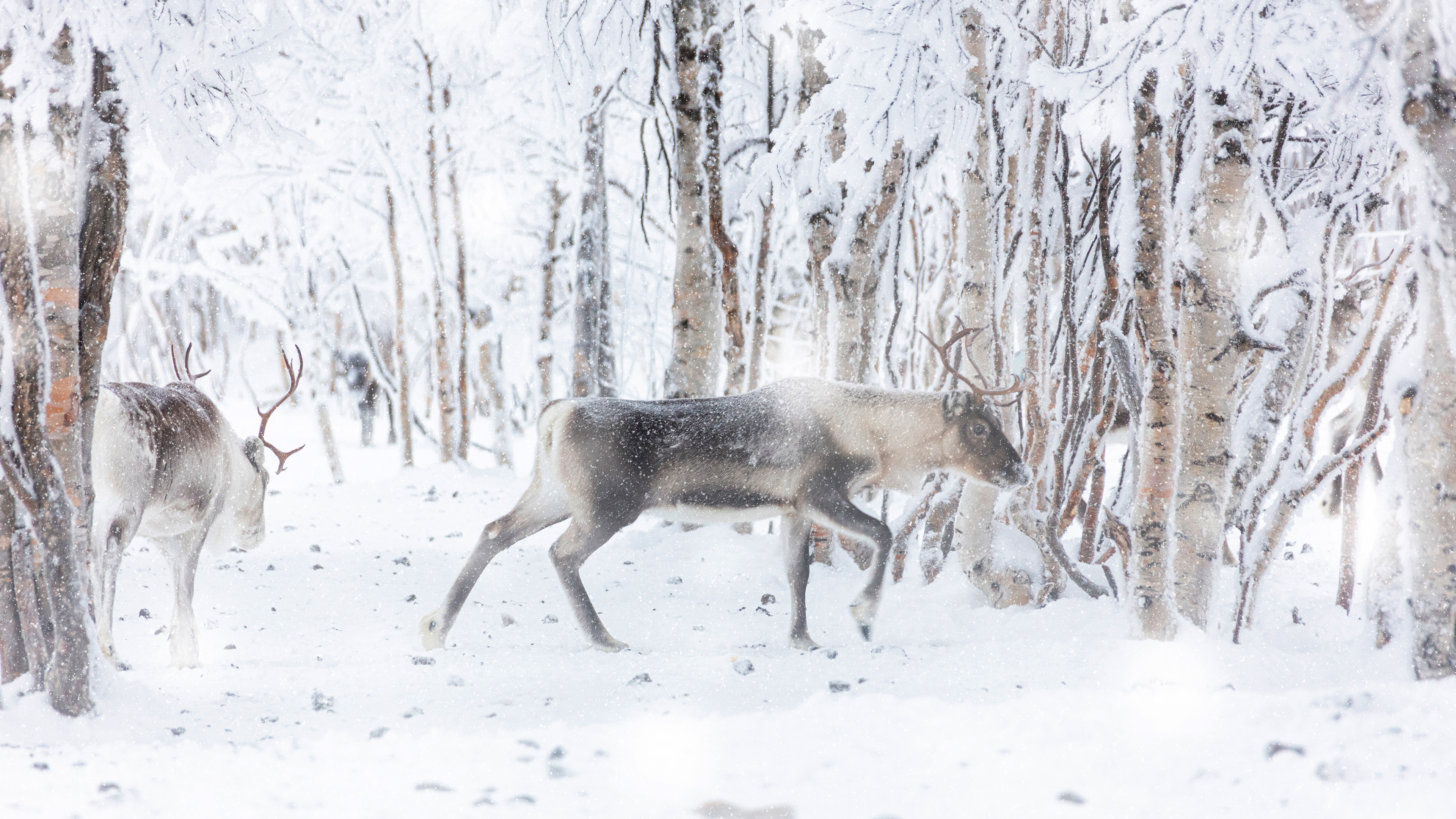 冬雪中的驯鹿,拉普兰德,芬兰 (© Roberto Moiola/Getty Images)